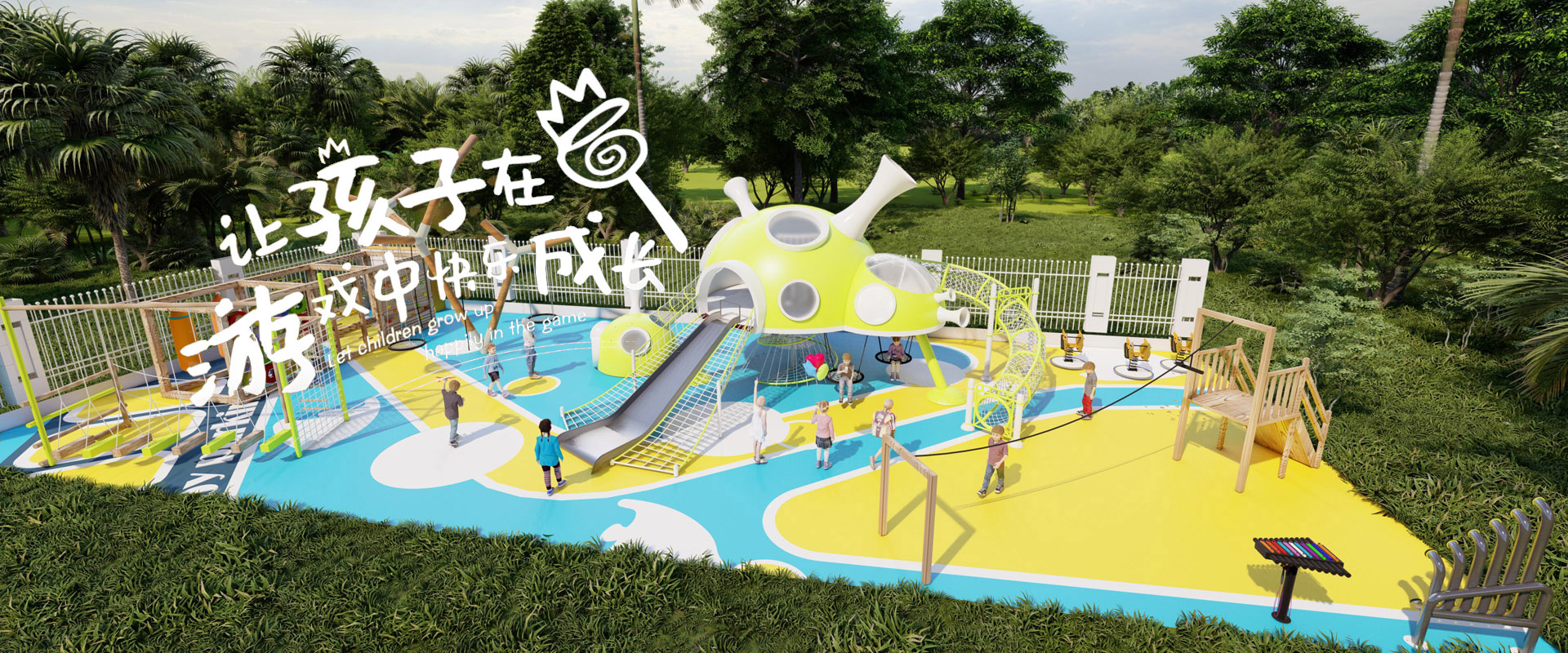 儿童往往喜欢丰富多彩的游戏设施,但不是说把游戏场设计成五颜六色的就是好的,科学的色彩理念关键在于视觉效果。为了不引起儿童的视觉疲劳,儿童游戏设施的色彩应当与周围环境互相协调,将游戏设施的色彩融于周边环境的色彩之中。